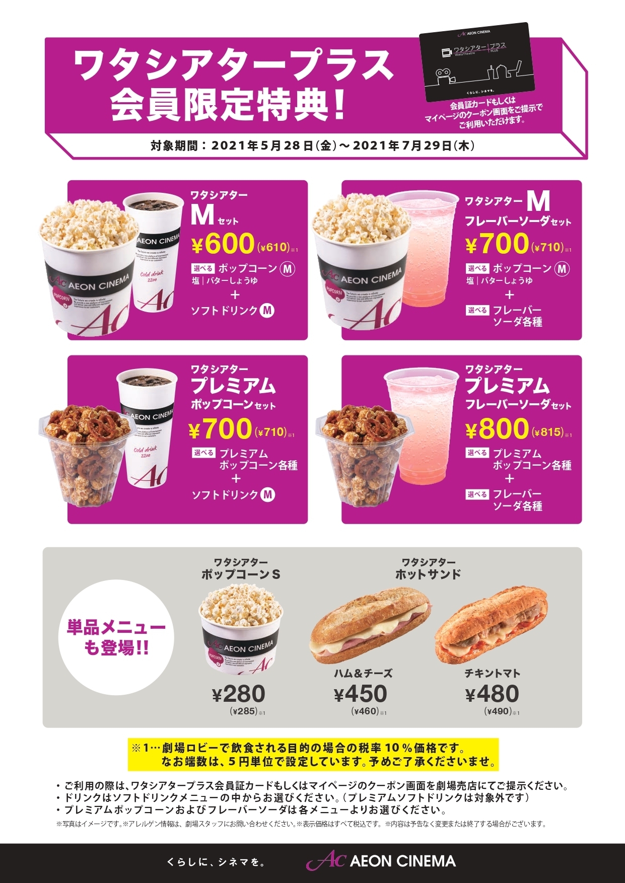 イオンシネマ 公式 イオンシネマ の ワタシアタープラス に入会すると 売店商品がおトクに ドリンク ポップコーンのセットだけでなく ポップコーン ホットサンドの単品メニューも割引になります 140字では説明しきれない そのほかの特典は